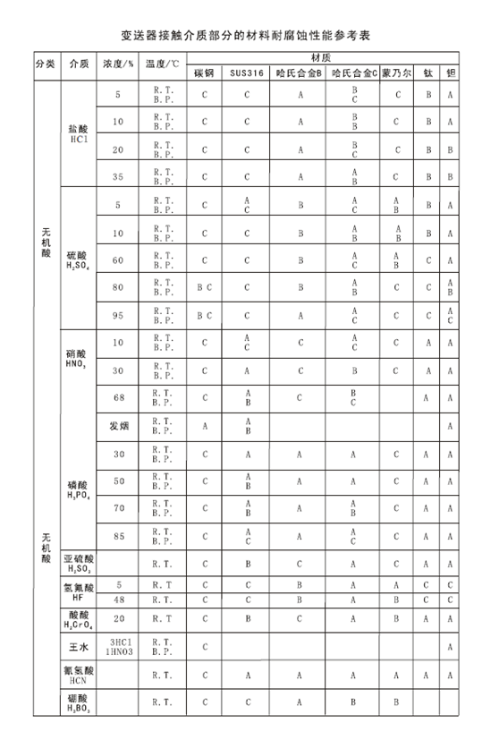 资料拓展:压力变送器接触材料耐腐蚀性参考表